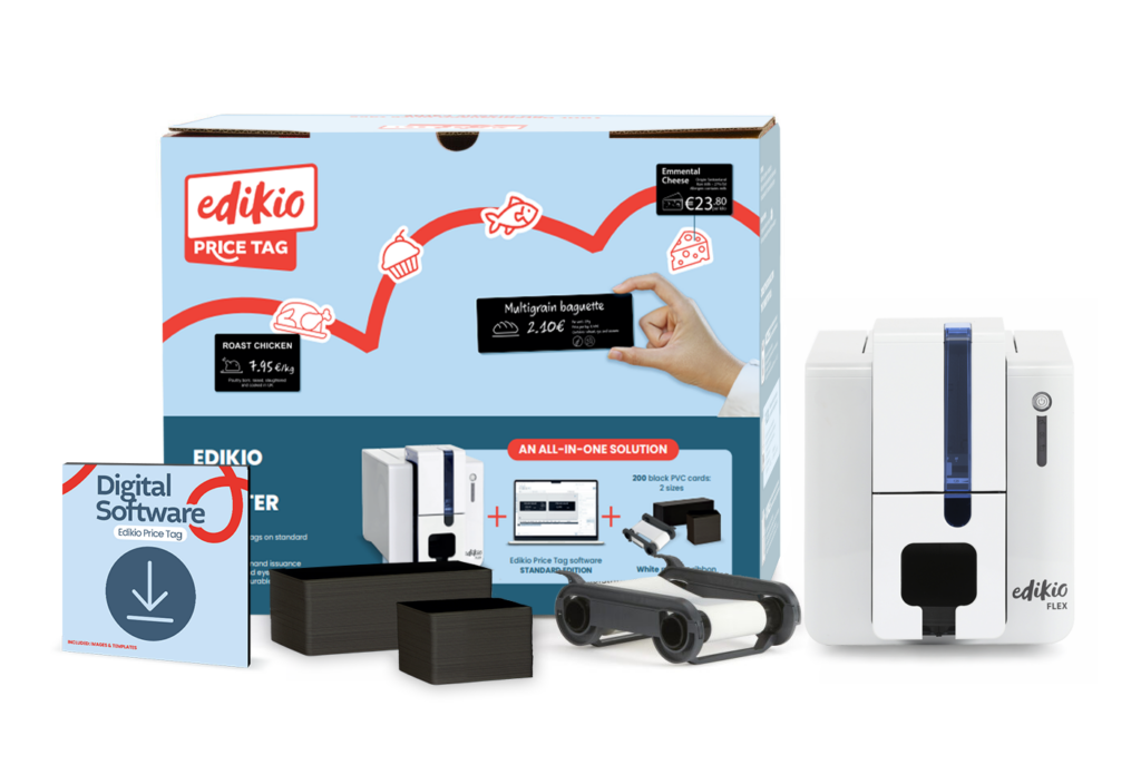 Edikio Price Tag ofrece soluciones completas listas para usar en carnicerías. Cada kit incluye: